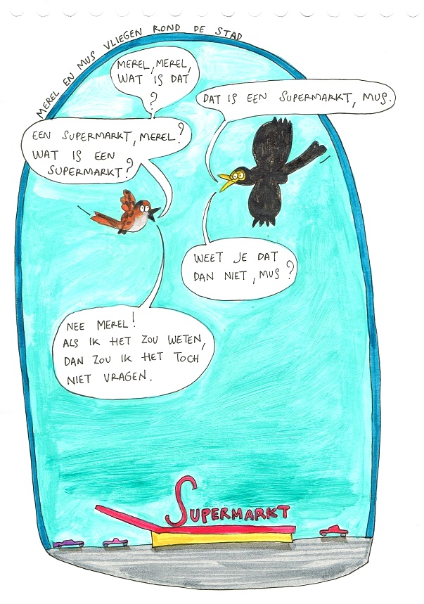 Merel en Mus, ‘De Supermarkt’. Prent 1.