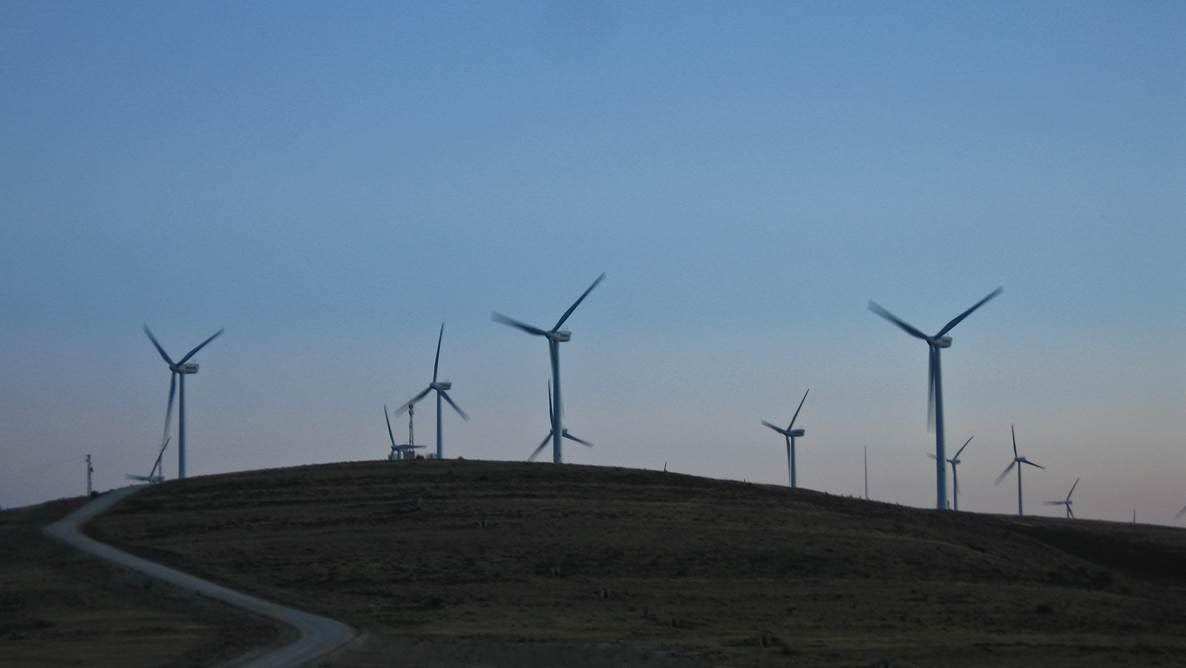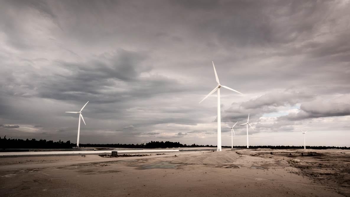 Meestal leunt hij met een schouder tegen een van die grote witte windmolens.