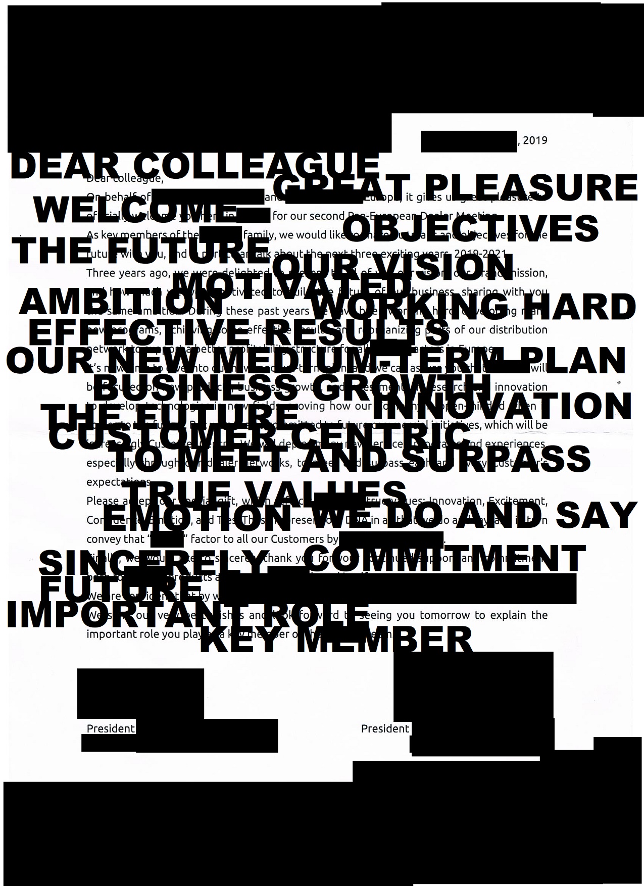 En dat mijn wit mijn wit en geen zwart maar toch zwart is of dat ik het wil kunnen kiezen, langs de ingelijste gele exemplaren.
